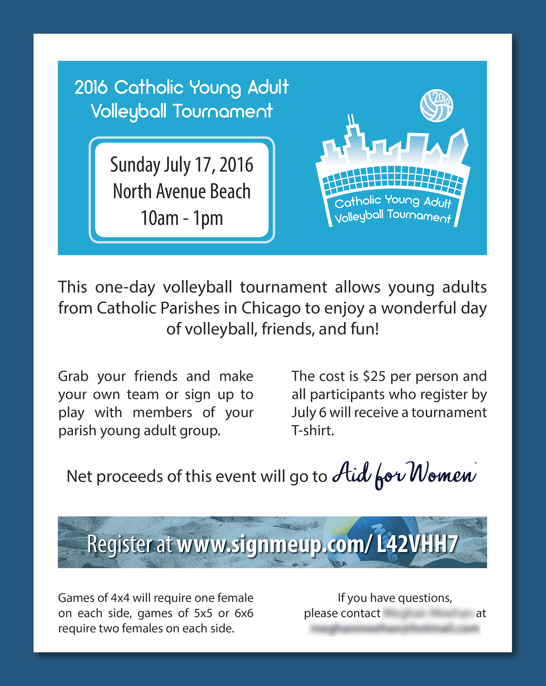 Commissioned t-shirt design and flyer for a volleyball fundraiser event in Chicago